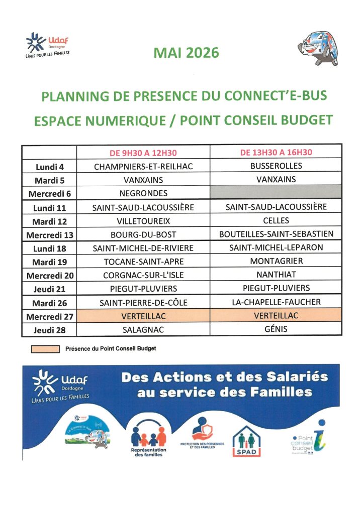 Retrouvez ici le planning de présence du Connect’e-bus