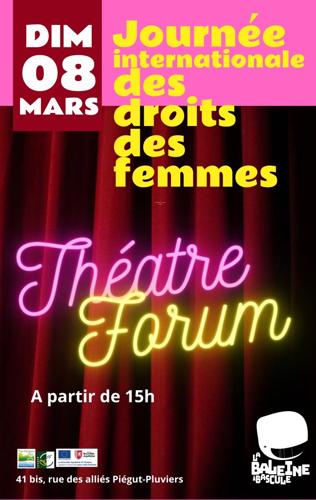 JOURNEE INTERNATIONALE DES DROITS DES FEMMES – THEATRE FORUM LE DIMANCHE 8 MARS A LA BALEINE A BASCULE A PARTIR DE 15H
